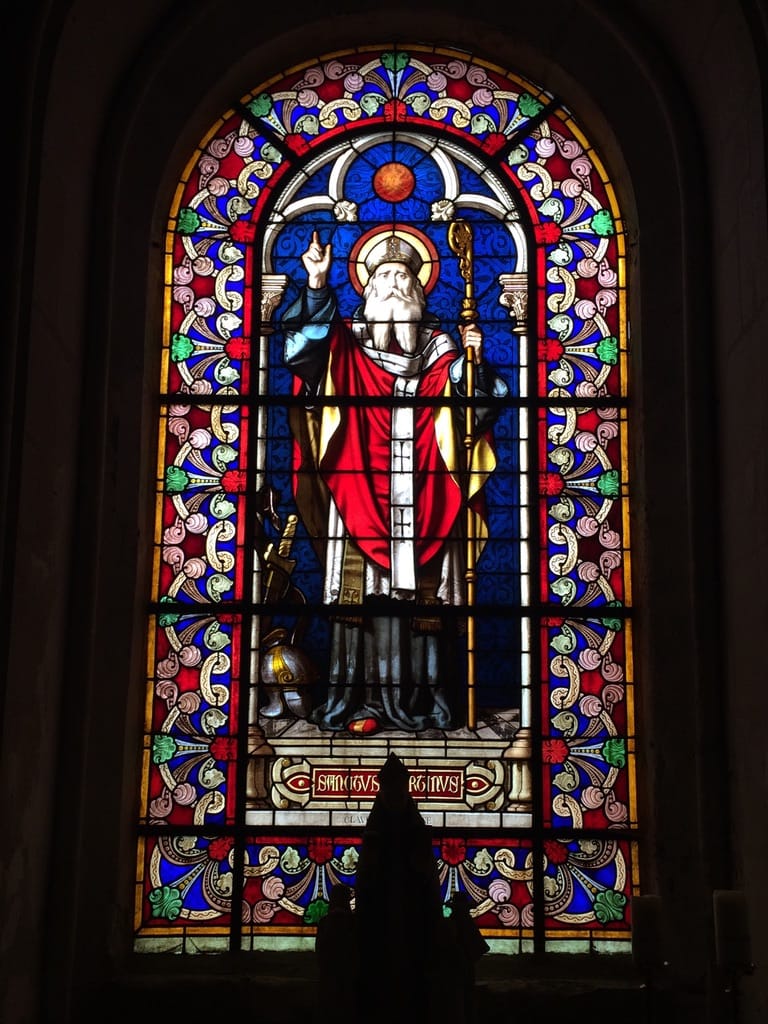 My new profile image is a detail from the stained glass window overlooking Martin's 397 CE deathbed in Candes, a concrete slab in the ancient church there. Anyone who visits Martin's place of death receives a blessing from the saint himself. (The cathedral and basilica in Tours don't feature this image; you gotta know where to go.)